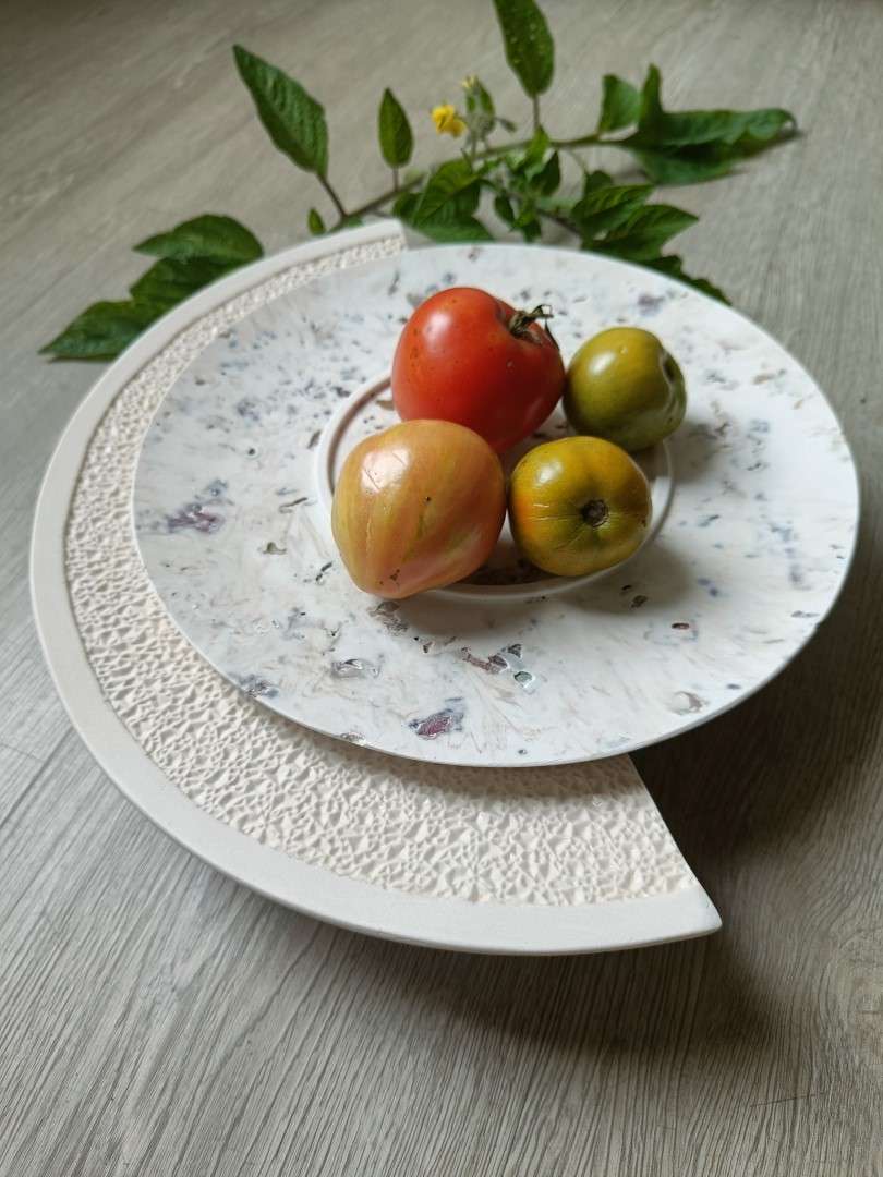 Trained in hospitality and the “Arts de la Table,” Elise refined her skills during several years at one of Paris’s most esteemed silversmith houses. That experience shaped her appreciation for tactile detail, luxury materials, and service-focused design. Today, with Maison Omaël, she presents a revolutionary concept in fine dining: a modular two-part dinner plate system that blends porcelain purity with sculptural, eco-conscious base materials.