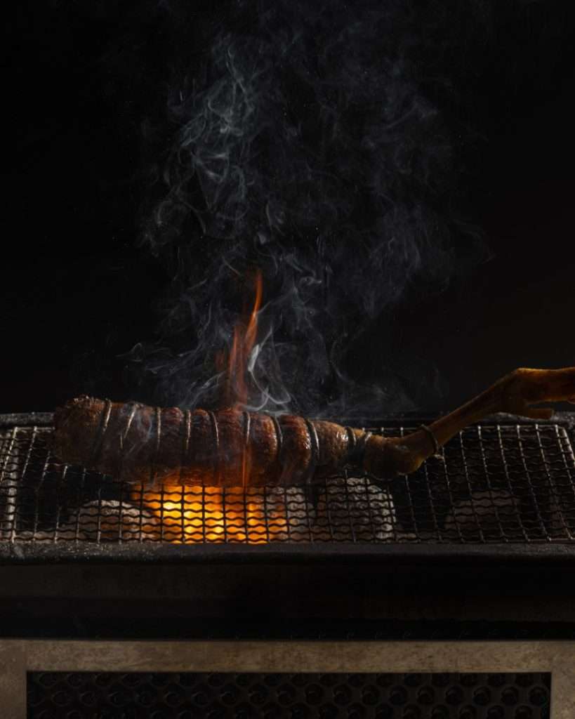 This dish is a profound expression of the Transylvanian terroir, marrying the farm, the forest, and the river. Chef Tordai begins with a farmhouse rooster leg, carefully deboned and stuffed with a robust sausage made from wild bear loin and pork belly . This savory parcel is smoked over hay and fruit wood for three hours, then matured for days to deepen the flavor before roasting .