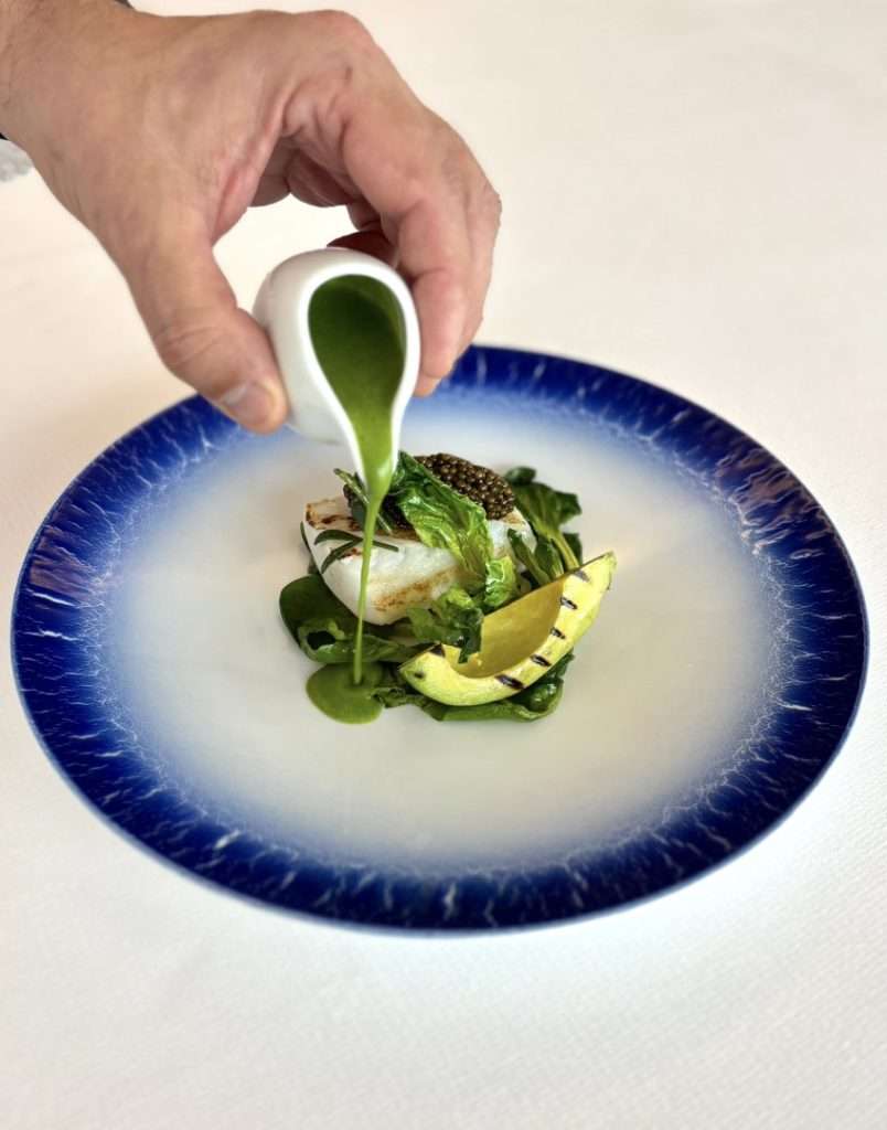The wood-fired coastal fish with caviar and watercress was another highlight. From a chef’s perspective, this dish is all about control. The kiss of smoke from the wood fire, the perfect salinity of the caviar, the peppery bite of the cress—it was a fusion of rustic technique and pure luxury. It represented both Rosso’s bold, elemental style and Lory’s classic refinement.