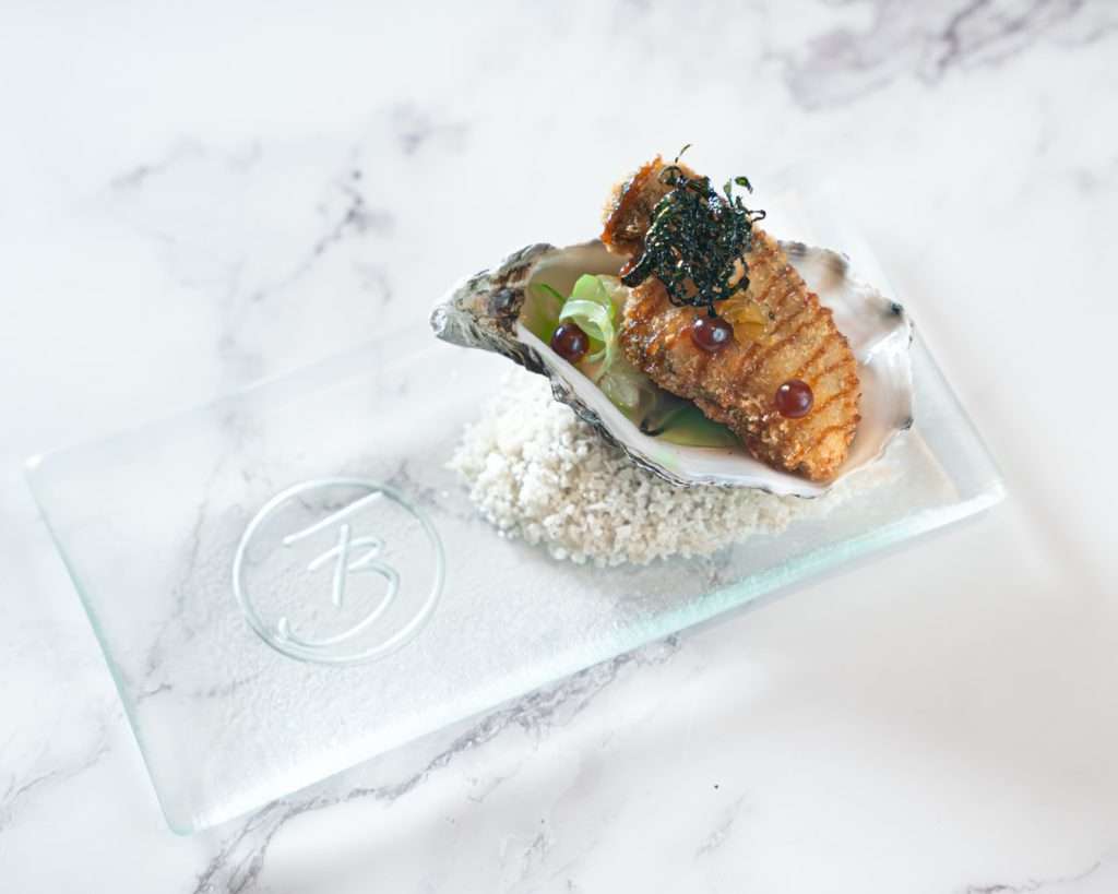 Starter: Oyster — Kiwi and mussel sauce