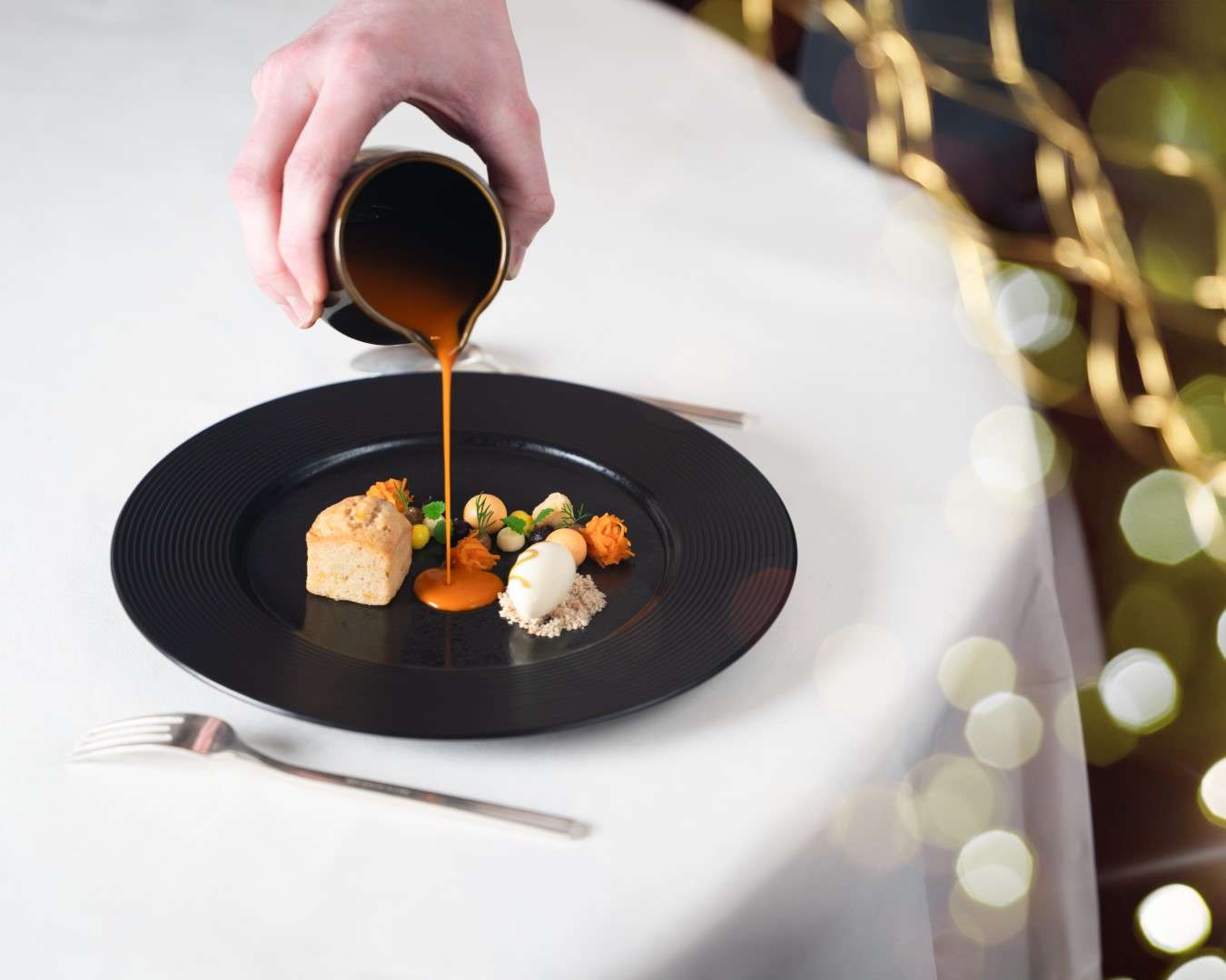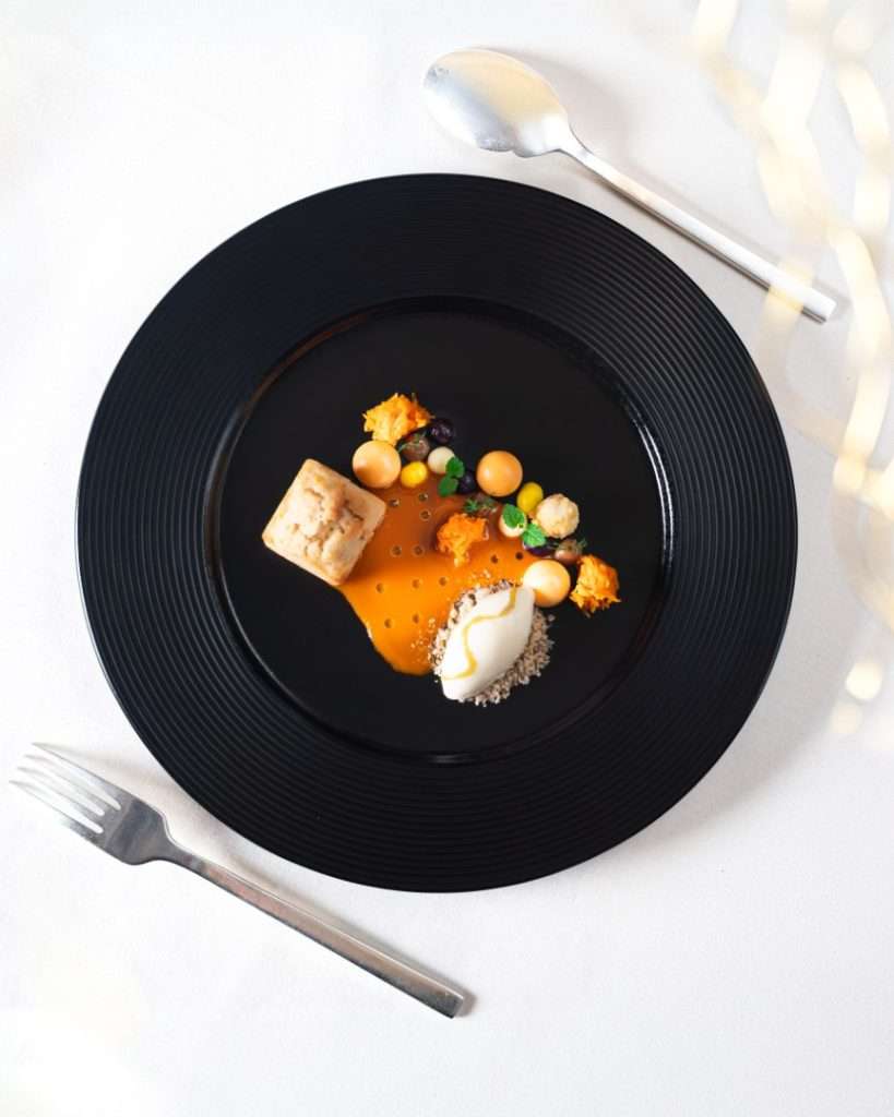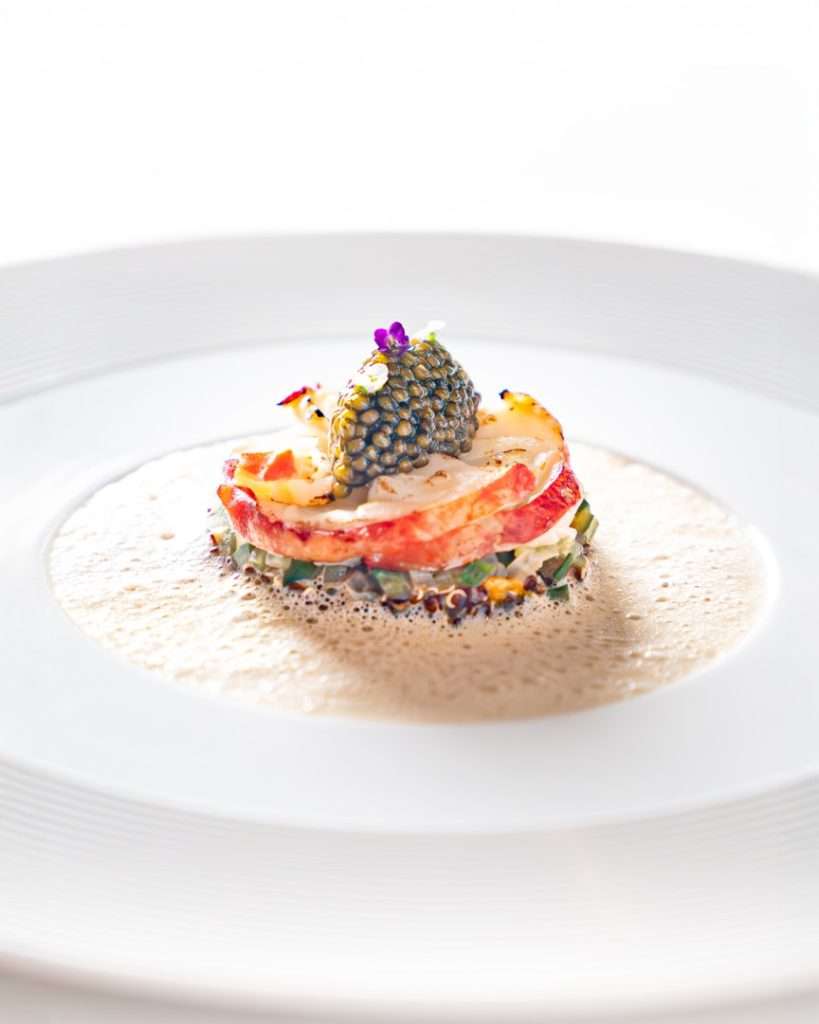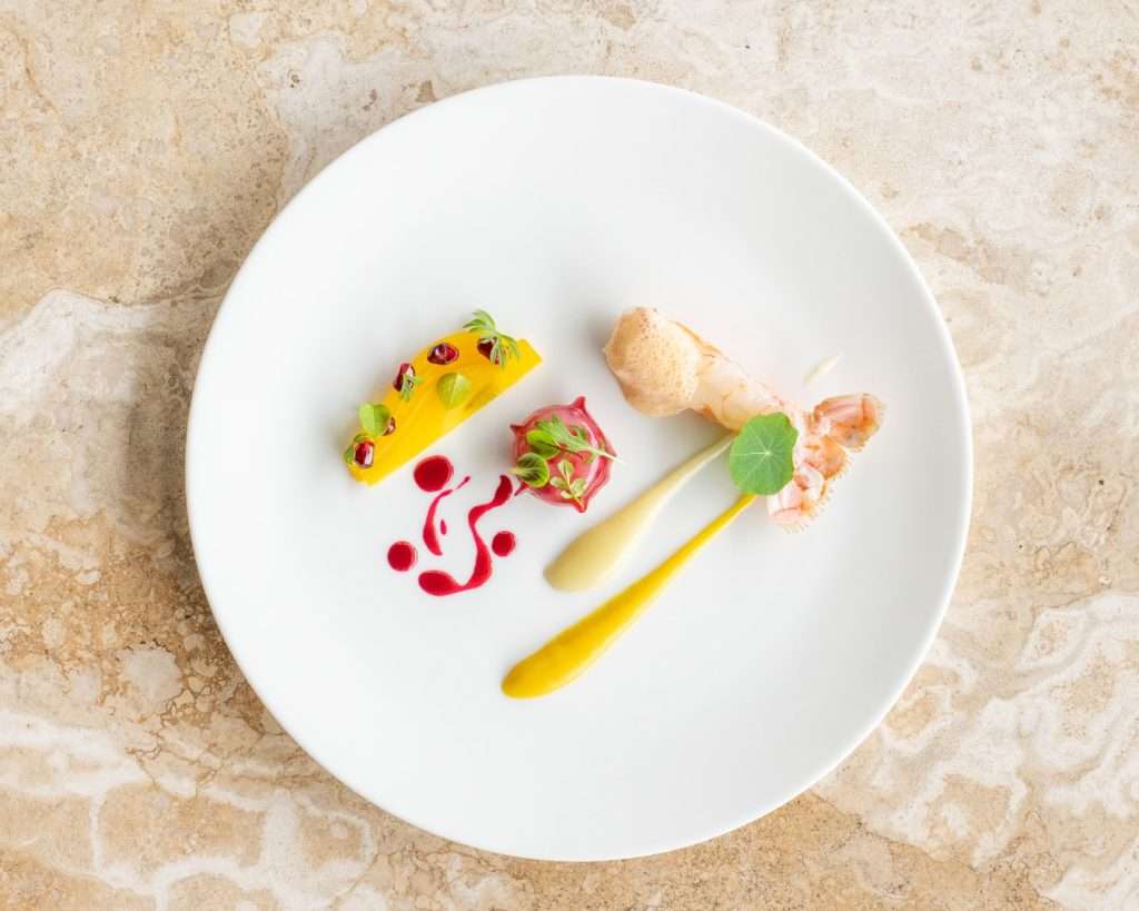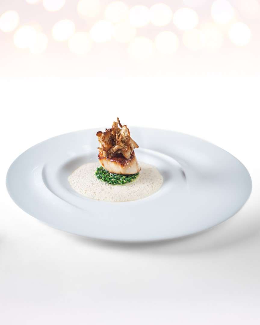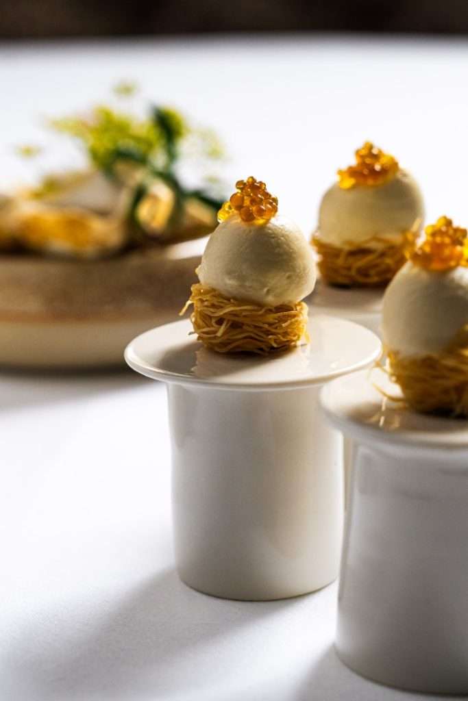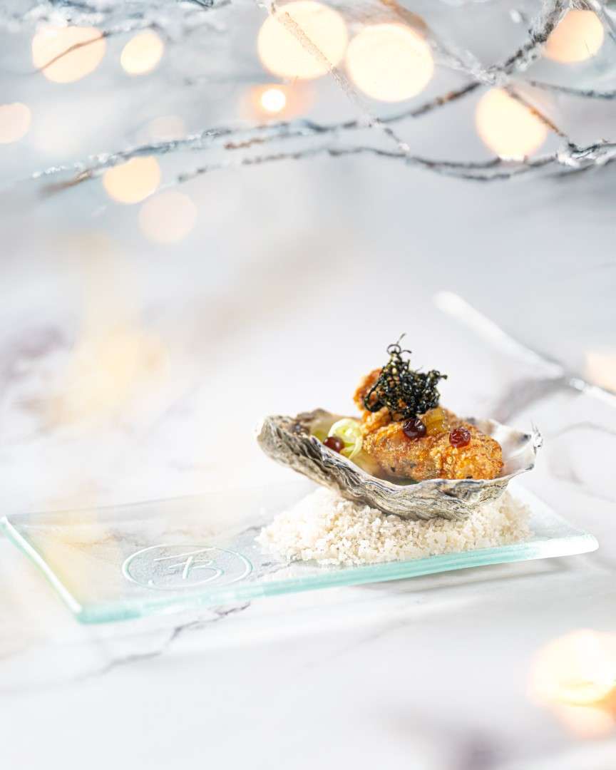 Chef Bourny’s festive menus are a study in daring elegance. The experience opens with the freshness of Langoustine and Caviar, lifted by a smoked raw cream and bergamot—a signature interplay of sea and citrus.