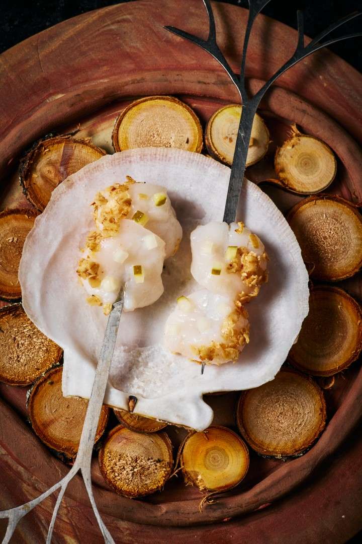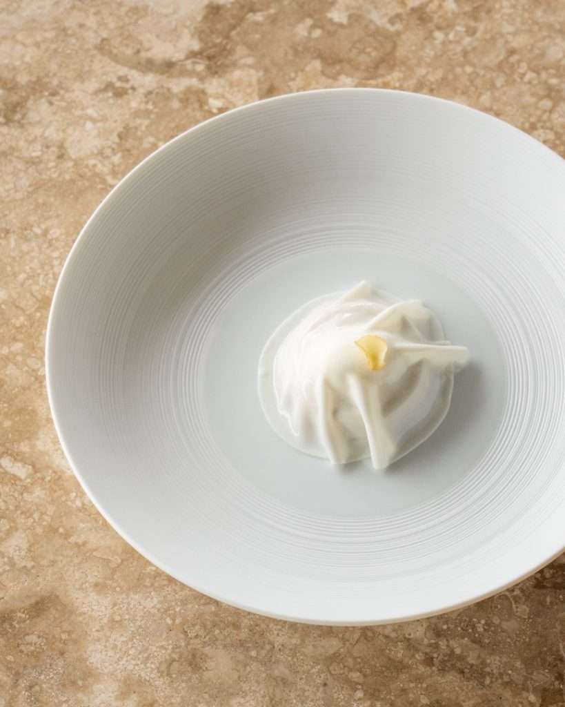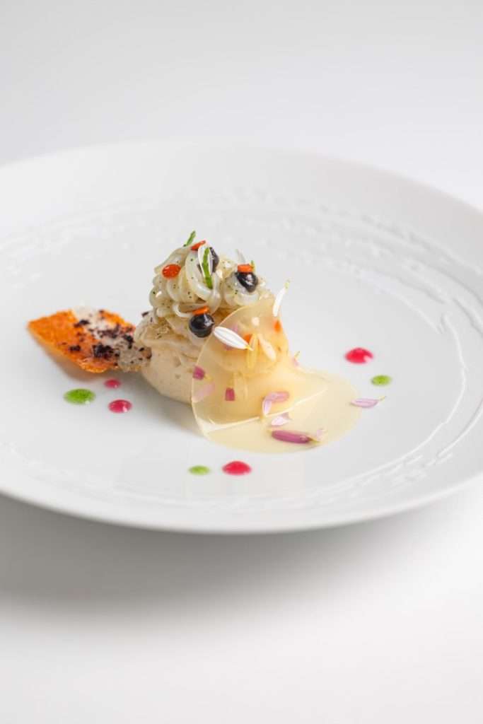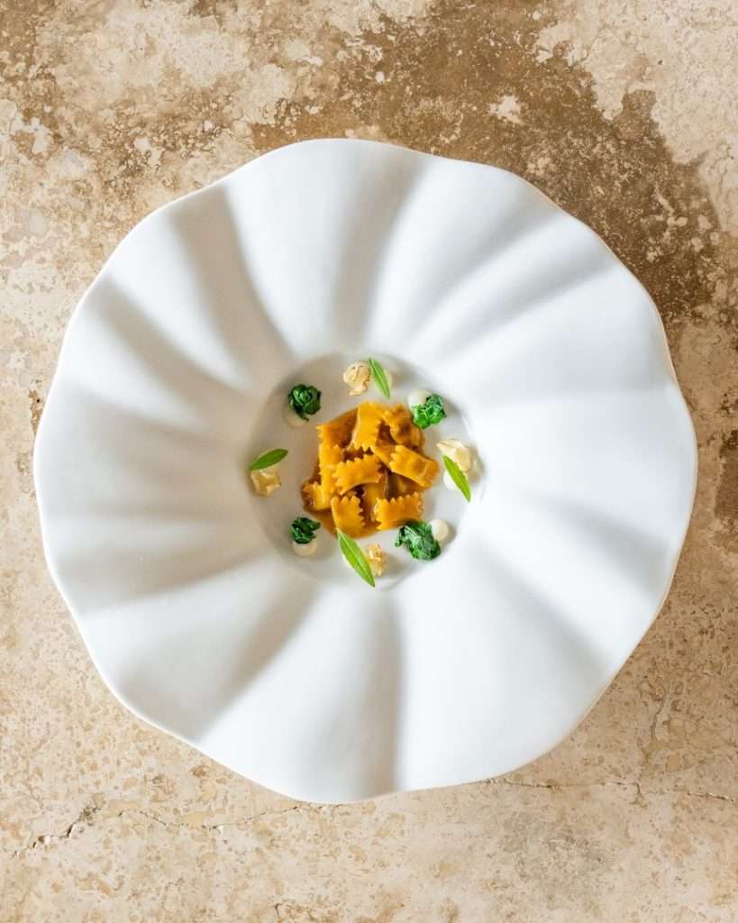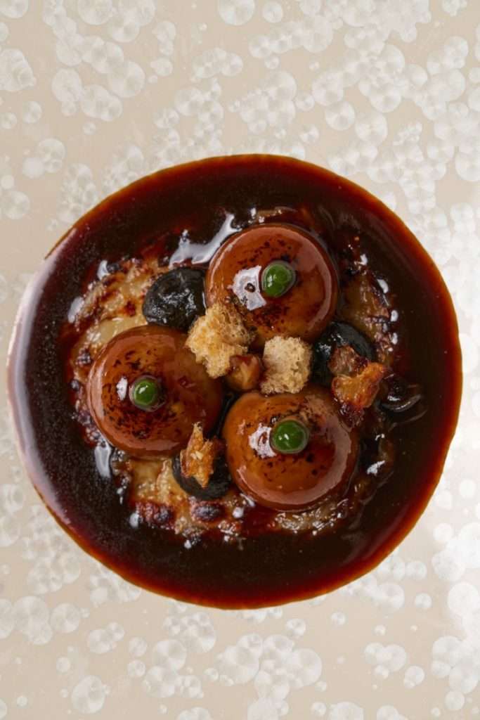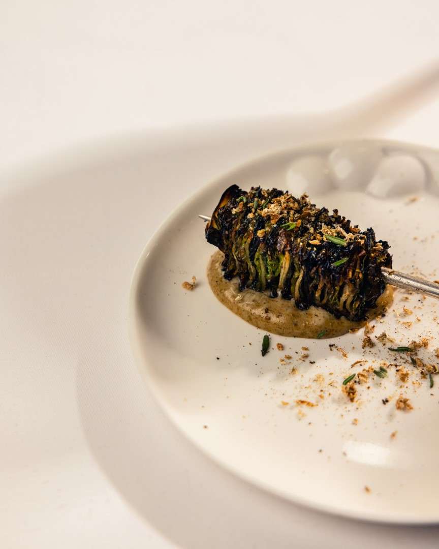The centerpiece of this collection is the Wild Turbot, a dish Chef Rosso describes as a study in “monochromatic woody tones.” Gently smoked to evoke the scent of a chimney, it is dressed in walnut miso and cut with vintage pine shoot vinegar.