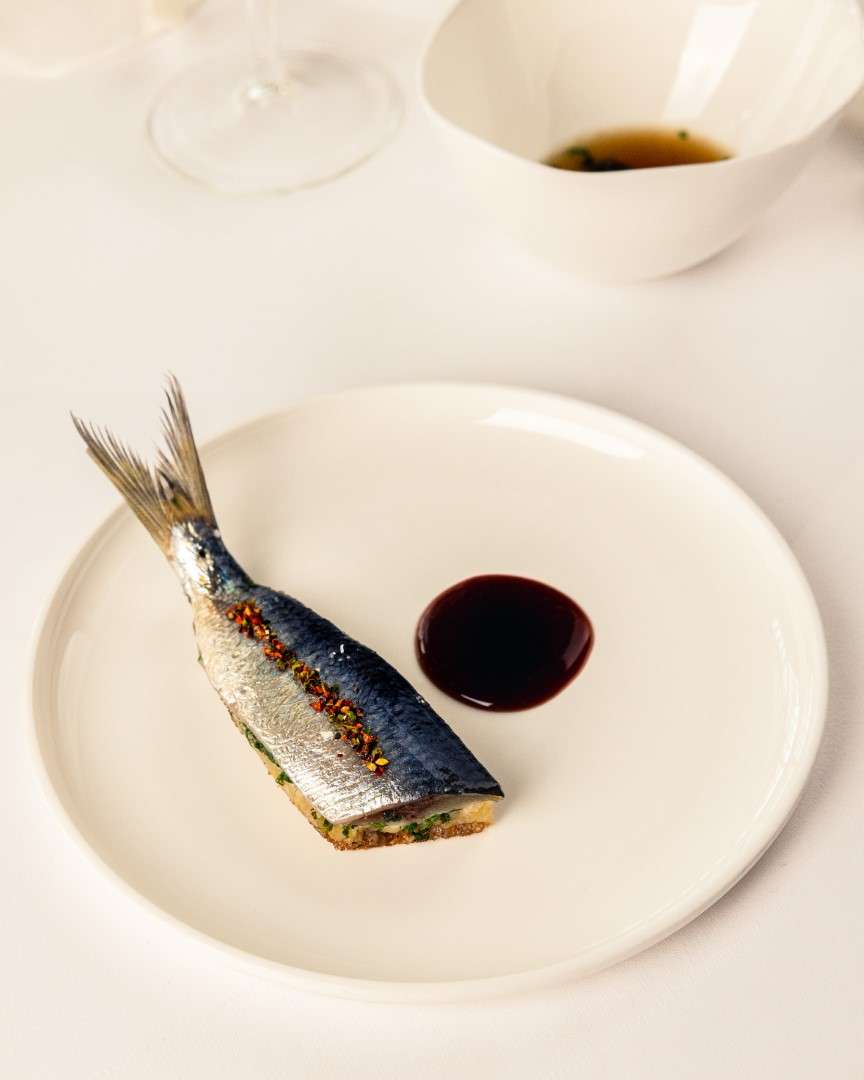 Starter: Locally-caught sardine marinated , lightly cooked delicate consonmmé
