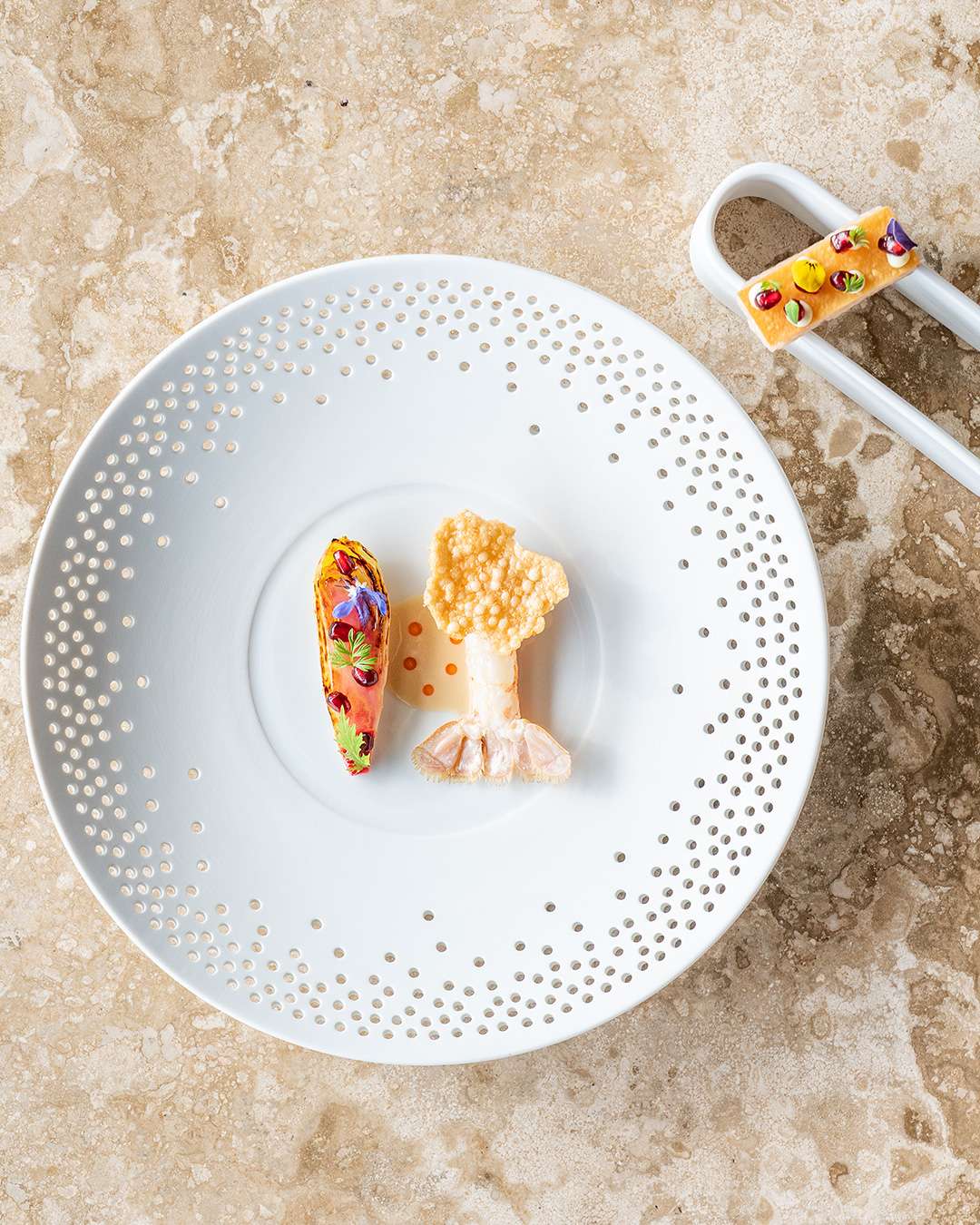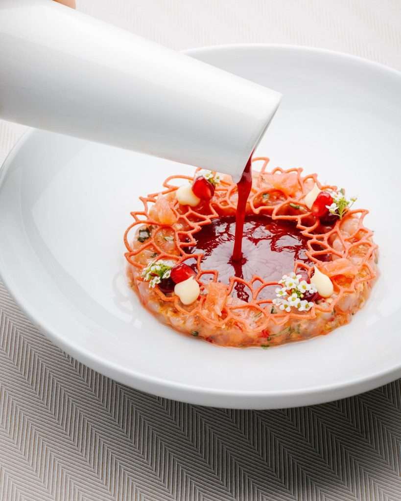 • The Technical Pillar: Lazarou reimagines tradition with a Crayfish Tartar brightened by the festive colors of blood orange and pomegranate, a dish that captures the vibrancy of the season.