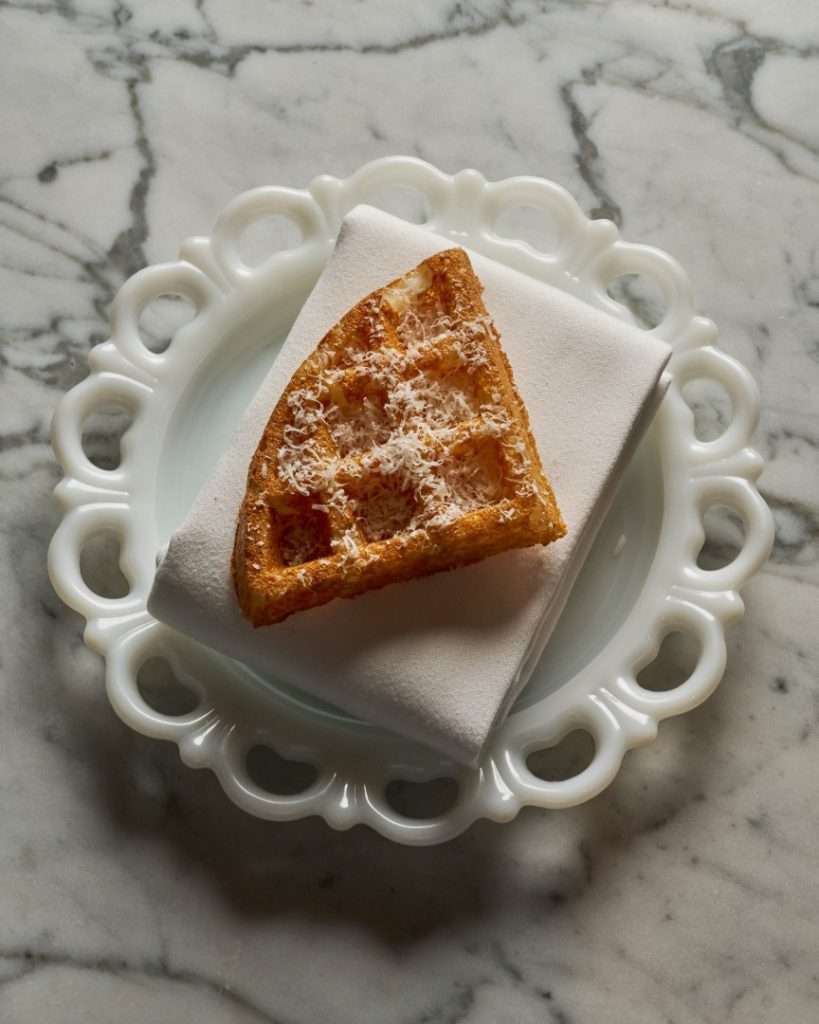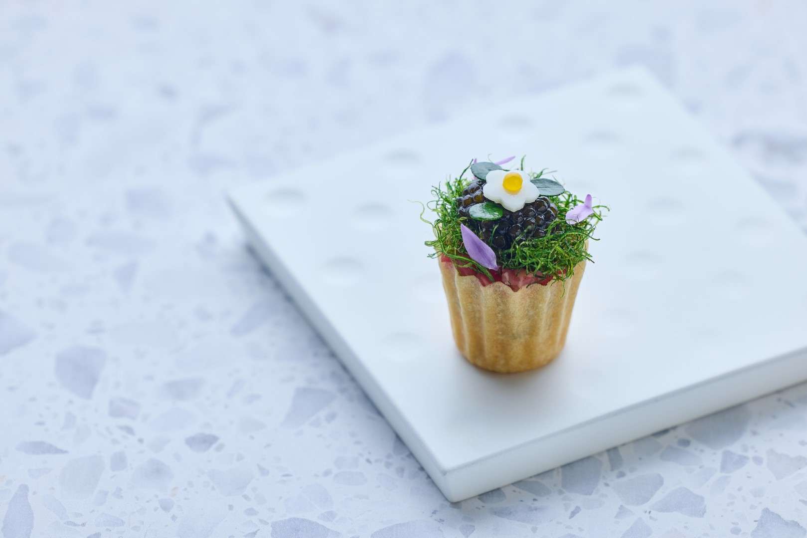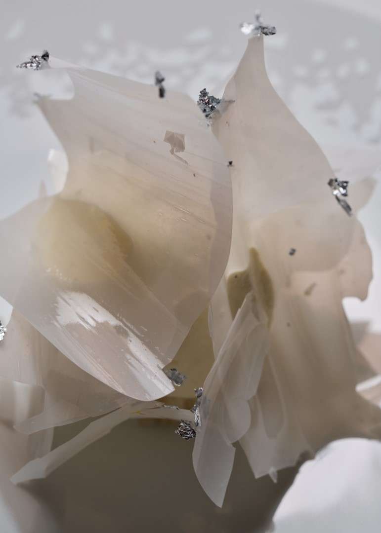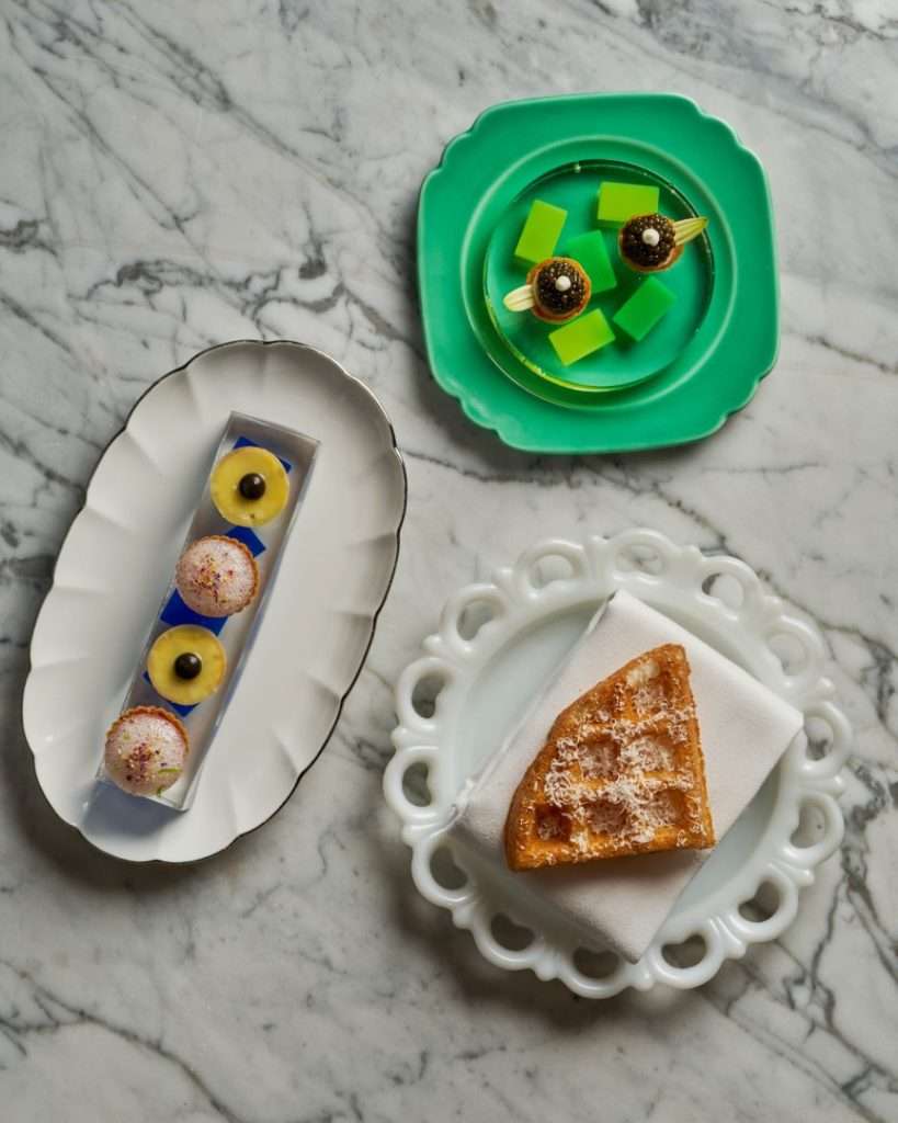 In line with his gallery-inspired setting, Huang’s desserts are visual masterpieces. The S’more reimagines the campfire through burnt marshmallow, truffle, and chocolate, while the Vacherin—a “Root to Flower” creation—blends violet and rhubarb with fermented cream. The experience concludes with a Café Gourmande, featuring Apple Maple Sablé and Cardamon Cannelé, a final bow to the “dynamic continuation” of his art.