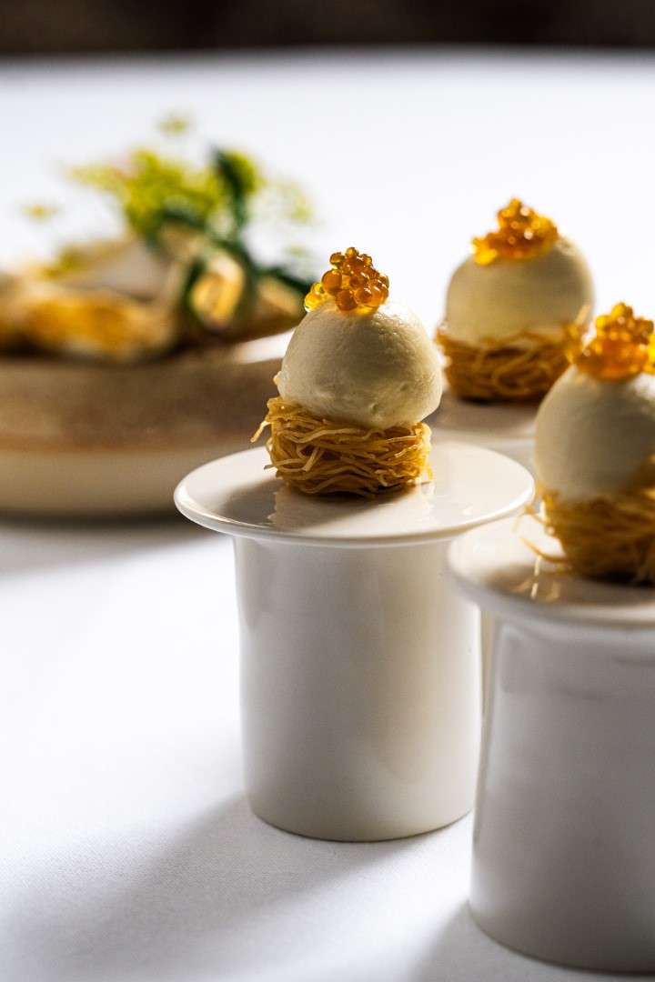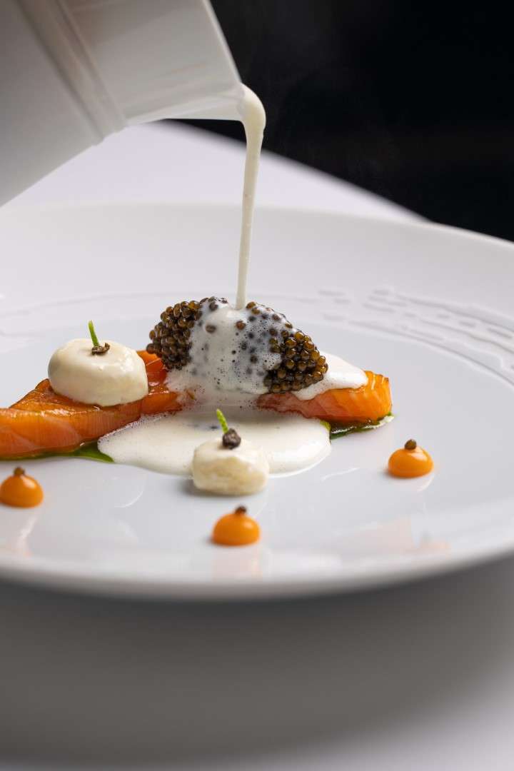 Starter: Langoustine and caviar — Smoked raw cream, bergamot