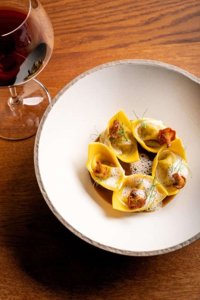 This dish is a masterclass in layering, capturing the entire spectrum of the mushroom. At its heart are “royal cappellacci” , their vibrant yellow dough rich with egg yolks. Inside, Chef Kintler pipes a decadent filling of truffled mortadella , Italian salsiccia , and Parmigiano Reggiano , bound with the dish’s first layer of mushroom: porcini.